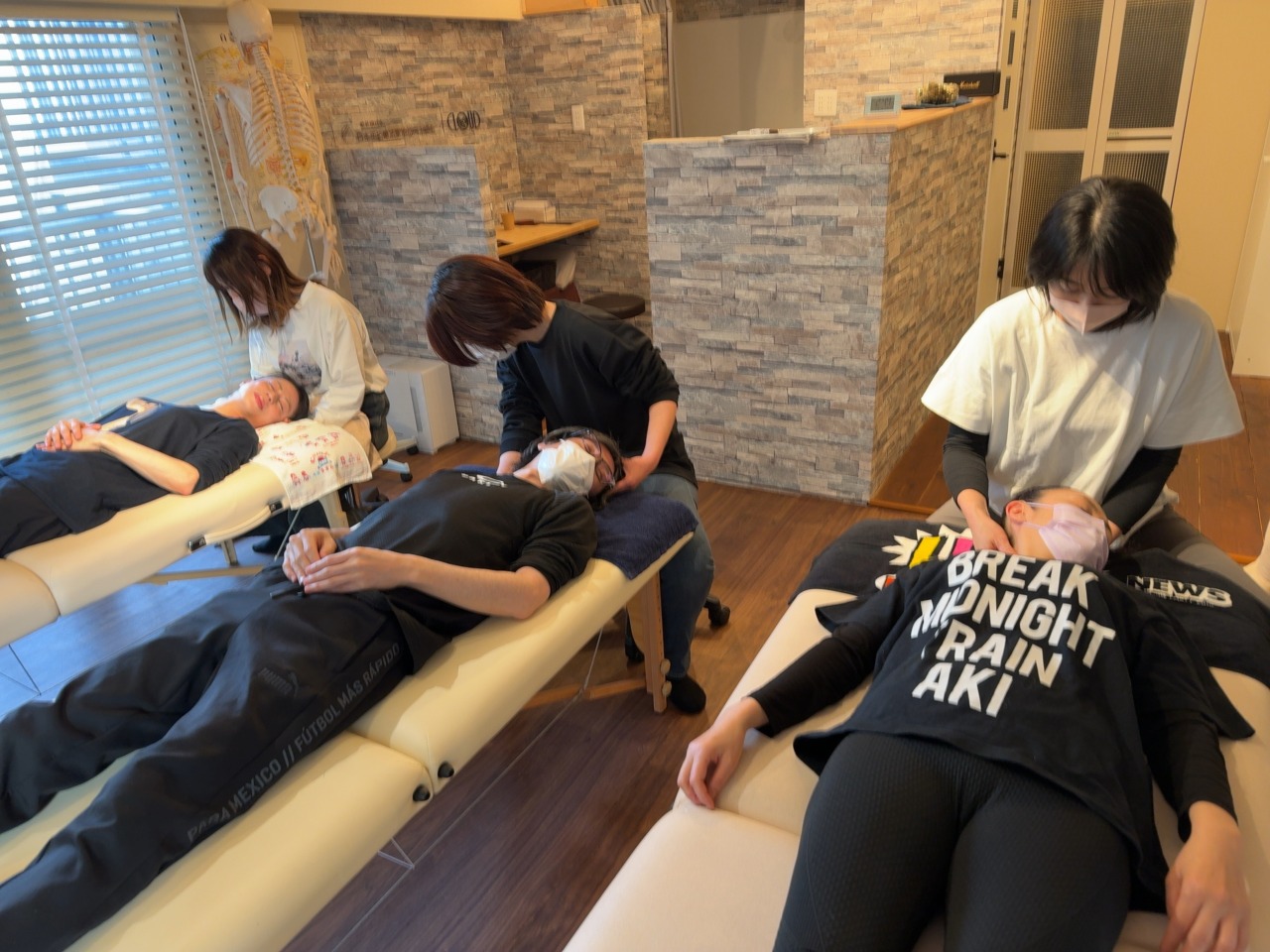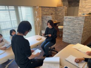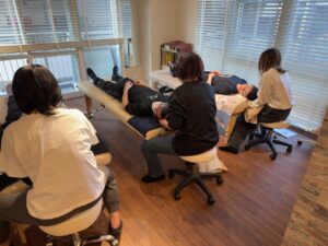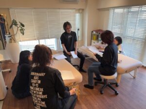 どのように筋肉を探れば良いか、どのように触ればよいか、どのようにほぐせばよいか、どのような効果があるのか、どのような人に施術をすれば良いかなど、細かく勉強していきました。
