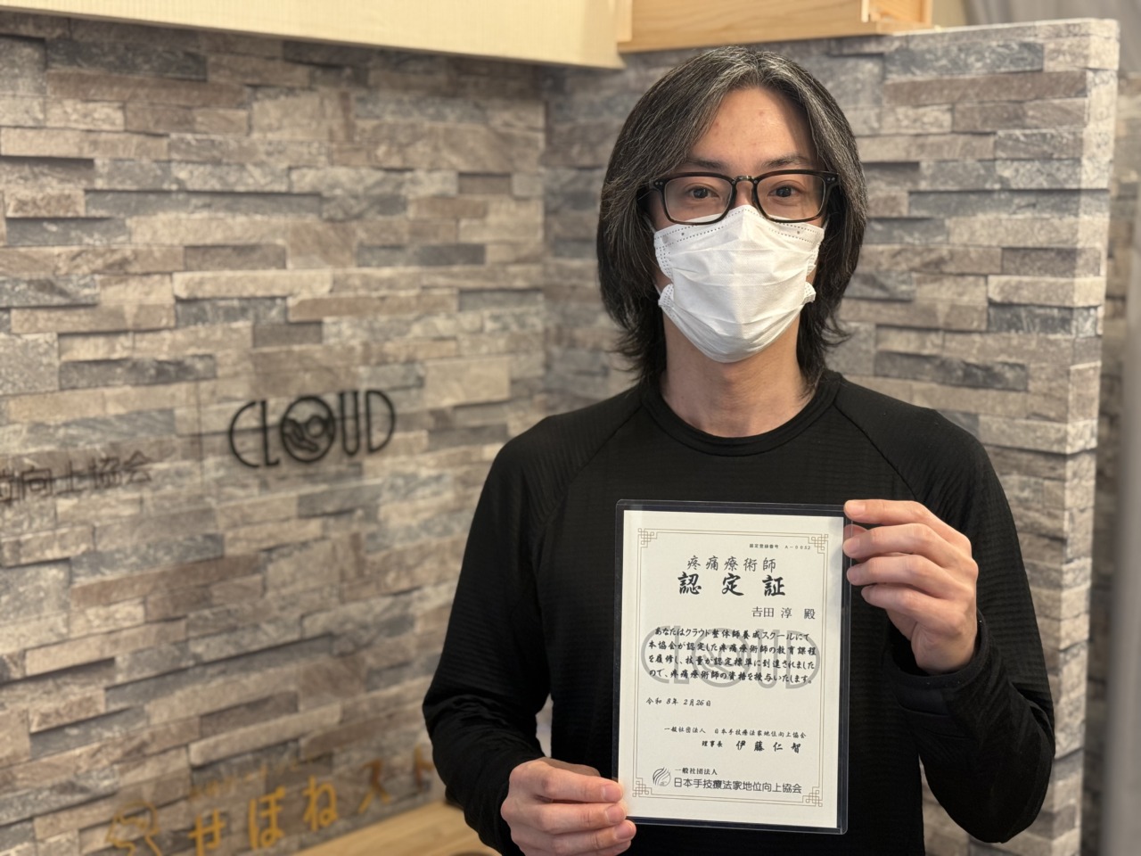 ここクラウドで伊藤先生から整体技術はもちろん、整体師として必要な解剖学や整形外科疾患の知識など様々なことを教わり、また整体院開業を志す私にとっては技術以上に大切な事を教わった気がします。